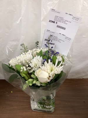 I received the flowers on a very windy day. They were beautiful, fresh, and intact.