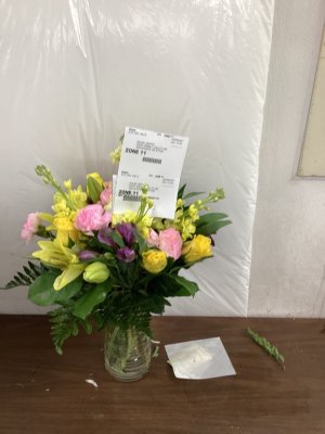 Flowers were beautiful, loved the vase, and the delivery person was super nice.
