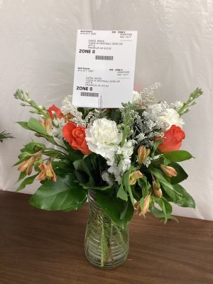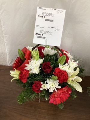 The arrangement is beautiful! I appreciate that the delivery person did not leave the flowers on my porch when the temp was 15 degrees! And thank you for the delivery the following day.