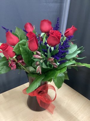 The arrangement looked very nice when delivered, but a day and a half later the roses are turning brown and showing no signs of opening. Also I paid Teleflora for a before 1 PM delivery, but delivery did not occur to 7 PM (Teleflora is reimbursing me).