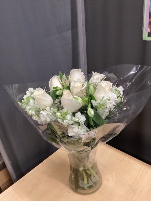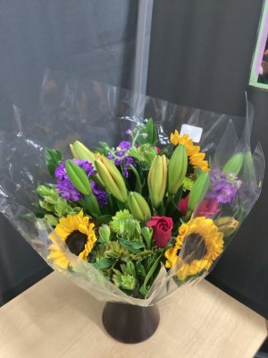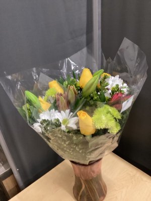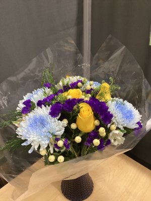 Bouquet was beautiful! Did not appreciate the fact that they were left exposed to the elements on our front porch. Not wrapped or enclosed for protection. Found them @ 10:30 pm upon returning home.