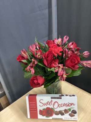 Paid for expedited shipping and it was supposed to be delivered before 12 and didn't arrive until after 2. Was supposed to come with a large box of chocolates and didn't receive those either