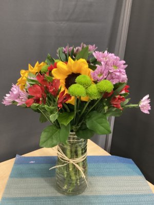 Flowers arrived crushed. And they weren't dispersed within the bouquet but together in a bunch. For example all the roses were in one spot. The stalk type flowers were bent and flowers on the stalks were dry and crushed and falling off.