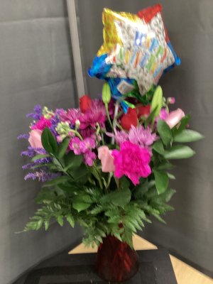 I originally ordered a flowering PLANT for my mother's 99th birthday. I also chose the balloon option. I was notified the day before delivery that I would be given a substitution of equal or greater value. When it was delivered it was a bouquet of flowers. I specifically wanted my mother to have a PLANT as she needs something to take care of and nurture at this point in her life. Some of the flower leaves were torn and the flowers generally had an old looking appearance. Not to mention the colors did not go well together. The picture must be photo shopped. And the balloon color looked like it was more for a man. Not pretty at all. This was certainly not of equal to greater value in my opinion! It was ugly! I was disappointed and disgusted that my mother received such a thing! I will never again order from you!!! Lesson learned. Nancy Rayburn