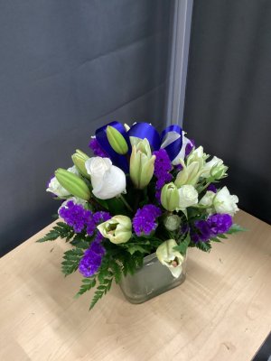 Very nice arrangement however most of the flower buds never opened ( they are yellow with purple stamen on the few that opened).