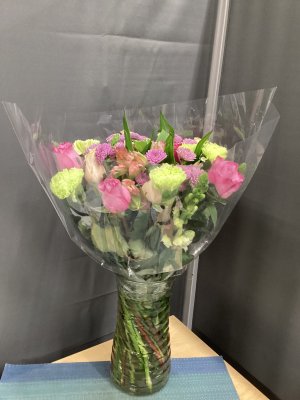 The flowers were very pretty. The color combination and diversity of flowers was especially pretty. I wish there had been some care instructions, i.e., how full to keep the water level in the vase.