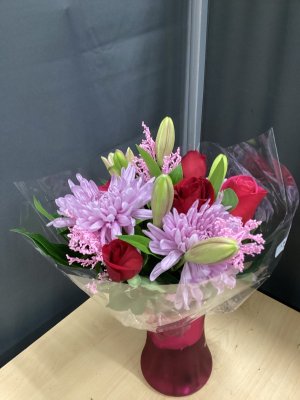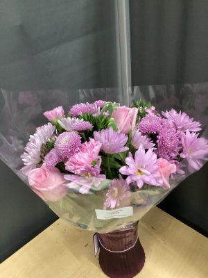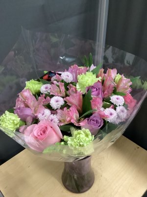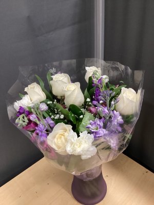 Beautiful bouquet! Full and fragrant. Delivery driver was very polite.