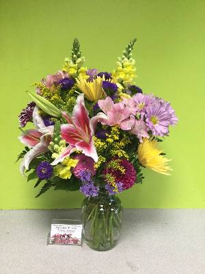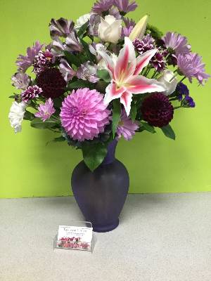 Great job! I ordered an arrangement with lilies to be delivered to my wife at her office and it was perfect. It was delivered on time and she loved it. Thank you Expressions In Bloom. Keep up the good work.