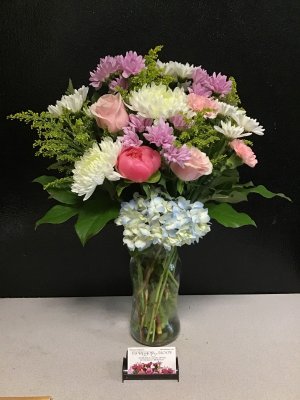 Thanks for the photo. To be honest, the flowers looked more like a birthday bouquet than a sympathy arrangement. I'd probably not choose “florist's choice” again, but the flowers were nice.