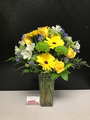 What a bright, cheerful, beautiful bouquet! And I appreciate receiving a picture of what my daughter is receiving. Thank you for your great care.