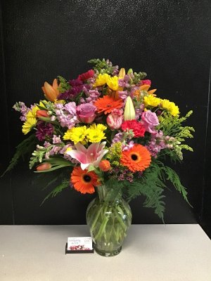 Gorgeous arrangement! It is as requested to brighten the recipient's occasion. Super helpful and friendly, too. Thank you so much!
