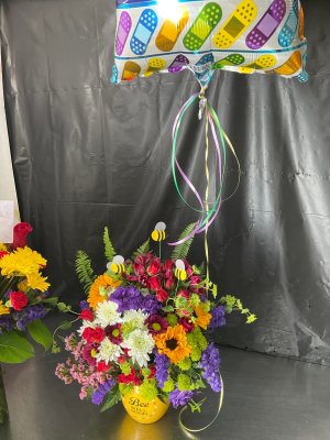 Flowers looked nice and the patient seemed to like them. Not sure what happened on the right side, looked like some were missing and not matching the fullness of the colorful left side. But was cheerful anyway