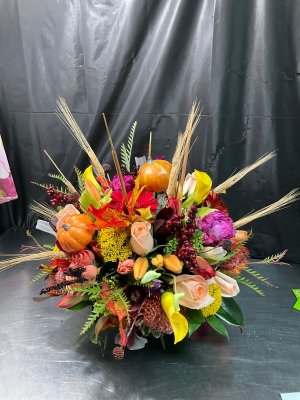 a beautiful arrangement. That's why we use your shop . For a gift this is a beautiful Thanksgiving arrangement .