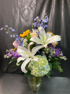 Oh my!!! This is absolutely beautiful. Perfectly named, Serenity Bouquet for a sympathy arrangement. Thank you for your help and following up with a photo. Since I live in NJ, I will not have the opportunity to see it. Lily was wonderful in understanding exactly what I wanted.