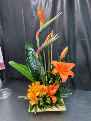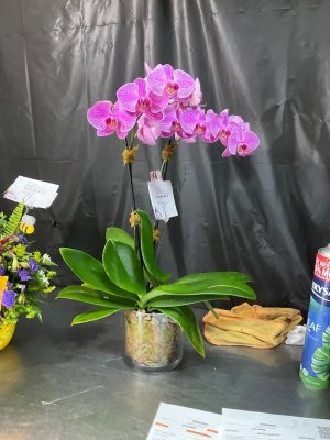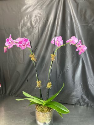 It does not look at all like the one in the store that I wanted.It is not stunning. There are not many blooms, the glass cylinder looks ordinary. I'm very disappointed