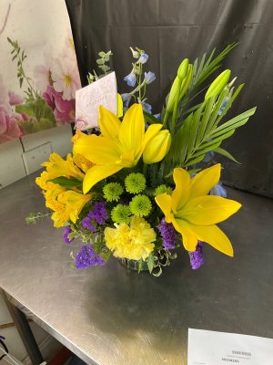 Thank you for delivering on my expectations for a beautifully arranged and well balanced work of art. My daughter loved the surprise and the attention she received from her coworkers who mentioned how lovely the flowers were. Thank you