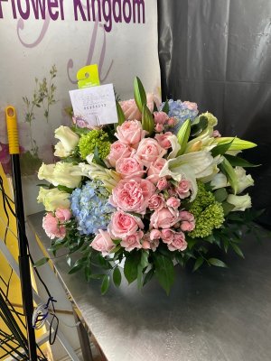 Delivery was exceptional! Delivered on time and arrangement turned out beautiful - just as described. Will certainly order from Flower Kingdom again.