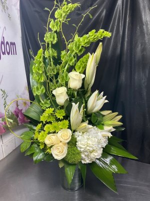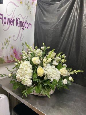 The flowers were absolutely beautiful and they were delivered promptly. I really appreciate receiving a photo of the actual arrangement and notifications regarding the delivery. This was a great experience and I will certainly use Flower Kingdom in the future.