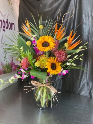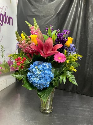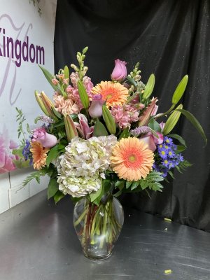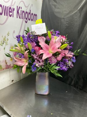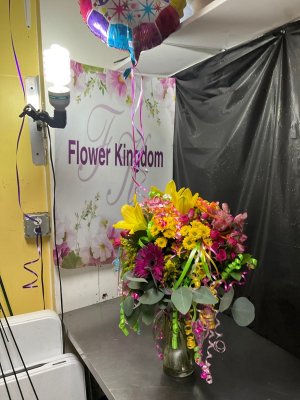 I'm out of state and sent this arrangement to my daughter for her birthday. It turned out beautifully!! I will be using Flower Kingdom again!