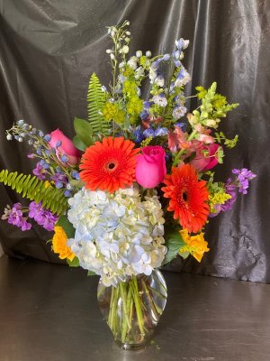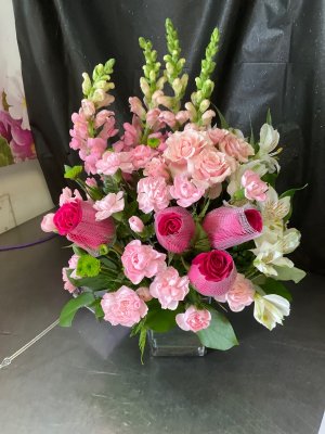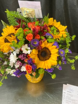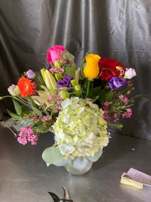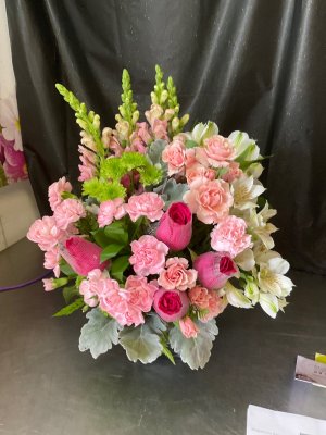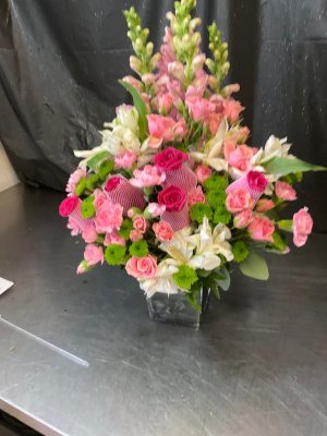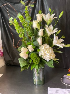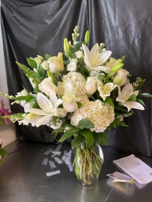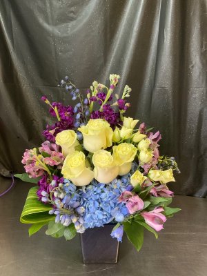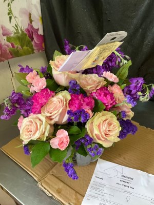 Beautiful arrangement. Artistic Flower designer worked with my preferences for flower arrangement. Delivery service was exceptional ….9am since home owner was going out for the day.