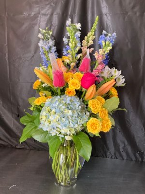 Absolutely stunning arrangement. They arrived at my daughter's hotel so she was surprised for her birthday. Excellent service the most beautiful flowers we've ever seen!