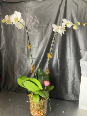 Excellent service and working with George Barnard over the phone I was able to select exactly the right arrangement for my wife to enjoy while she is traveling. Wonderful experience working with this sales representative. Getting a photo of the arrangement is an added bonus. Lovely.