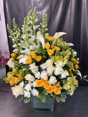 The first time I've ordered a center piece for the family and as always the quality is excellent! When the occasion calls for flowers, Flower Kingdom is absolutely my choice. Great job to everyone. Thank you.
