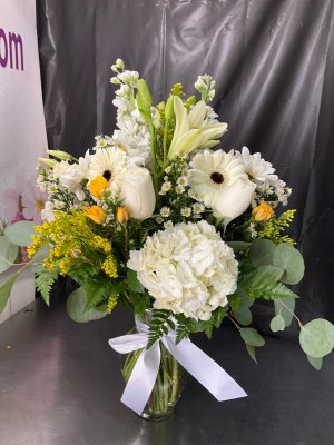 I love the variety of flowers that you incorporated in the arrangement.   Thank you.