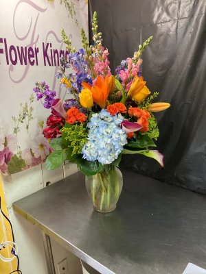 The flowers were absolutely beautiful. The combination of flowers were exquisite with many complementary colors. The flowers were sent to a special friend on her birthday. If you're sending flowers, especially from afar, you can trust flower kingdom to do a really good job.