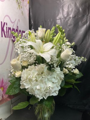 Wow! What an absolutely stunning bouquet! Flower kingdom is fantastic. Their flowers are fresh and their bouquets are gorgeous. I highly recommend using flower kingdom.