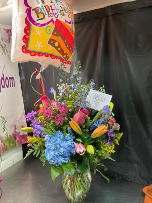 This is the second time I have ordered from Flower Kingdom for my friend who now lives in WPB. She loved the birthday flowers and vase they came in! She also mentioned the fragrance was amazing. Will probably become my go to place for her future gifts/events.