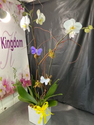 I already texted you on Saturday! I was very disappointed in the picture that you sent of the two stems of orchids that I sent to Connie Frankino! I only saw three flowers on the two stems and some butterflies, that I didn't understand why they were there! Are they orchids? Also, I had asked for a nice container, but the one that I saw was a very plain white square! I have used you for many years and recommended you to many people, most recently for Lynn Kirker in Ibis when she was ill! If I was wrong about the flowers on the orchid stems or the container, please advise me so that I will know how to order more accurately in the future, if I should do so! Thank you