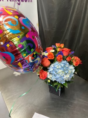 I like the bouquet and the matching balloons Hoping my friend will be pleasantly surprised today. Thank you