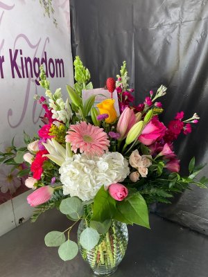 Flower Kingdom's flower arrangements are always truly phenomenal and the customer service is absolutely top-tier! I appreciate being informed of each step of the process as though I was there - from the e-receipt that outlines the details of my online order, a photo of the stunning bouquets they put together before delivery (I love this and it is so greatly appreciated!), to the notification of the order being delivered. The care that is put into each order and bouquet is simply breathtaking. The flowers from a recent order lasted two months because they wrapped the roses individually. Whether for a birthday or a get well order, each arrangement has been beautifully crafted and delivered quickly. I feel confident that every order I place through Flower Kingdom will be remarkable. The recipients are always in awe of the flowers, and appreciate the care and craftsmanship put into the arrangements. I have ordered through Flower Kingdom a few times now, and will continue to order through Flower Kingdom every chance I have, and continue to recommend them to everyone! Thank you for your dedication to making each arrangement so personalized and special, and for the speed in which it is done too! I am so grateful to have found such a phenomenal florist that offers flower arrangements for every occasion!