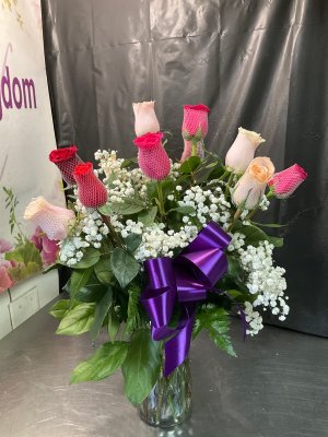 It is supposed to be a dozen red roses . Quite beautiful but not what was requested