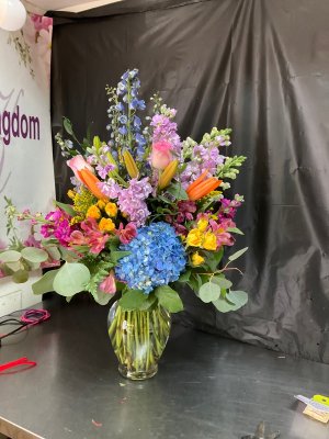 Beautiful my mother could not be happier with the arrangement I will never use another florist again FLOWER KINGDOM IS THE BEST