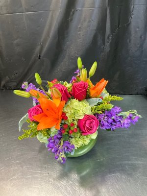 Artistic arrangement of beautiful, fresh flowers! Our friend was delighted to receive them. Thank you so much!!