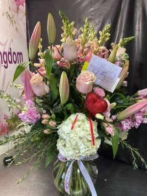 The arrangement was just GORGEOUS! Thank you for always taking the time to put together a perfectly pieced arrangement. As always, getting a photo is a plus! Thank you.