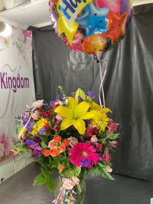 I ordered flowers from out of state for my grandmother's 99th birthday. The ordering was easy. The vase blew her away and she said “it was the most beautiful flower arrangement she had ever seen.” I was very satisfied with Flower Kingdom and would certainly recommend.