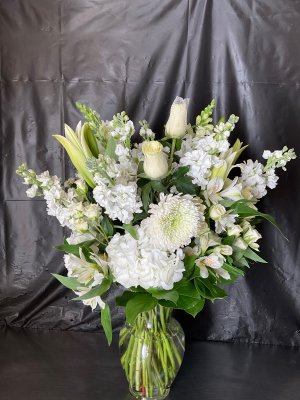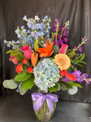 Artistic arrangement of beautiful, fresh flowers! Our friend was delighted to receive them. Thank you so much!!