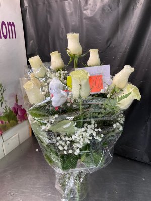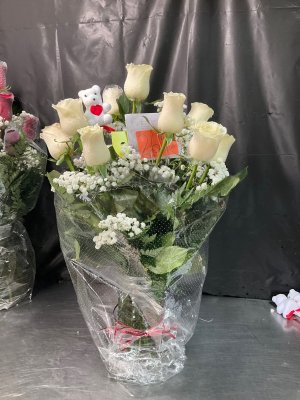 I will never order again!! The flower arrangement was a complete mess. The leaves were almost dead and changing colors, the red roses were limited and the white bag containing the bear was wrinkled, like it was old and reused. My fiancé was extremely disappointed in the quality and presentation of her arrangement.