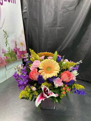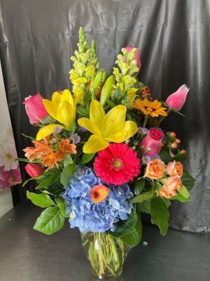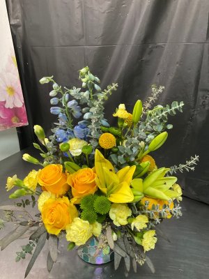We were so pleased with our beautiful arrangement of flowers for our mom‘s funeral. Our arrangement stood out from all the others and we had more comments on how beautiful it was. Thank you very much!