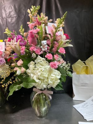 The Flower Arrangemnt was fantastic and loved all the different colors I asked for . Also the little bear was nice touch !Since this was the first time i have used Flower Kingdom I did not like pre photo as at that time I was not sure I was going to get it but inthe future it would be a good idea.I would have given 5 stars but it did not let me!