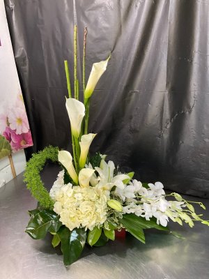 The arrangement is beautiful!! Thank you. The person that helped me with my order was very helpful, efficient and polite .