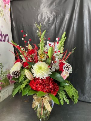 The flowers were beautiful and my friend loved them. They looked beautiful on her table for Christmas dinner. Thank you Flower Kingdom for a beautiful arrangement.