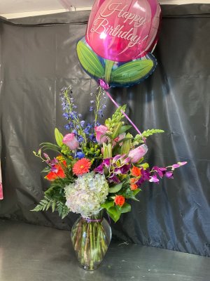 The flowers and balloon are beautiful! And, getting a picture of the arrangement is a FANTASTIC idea!!! Thank you!