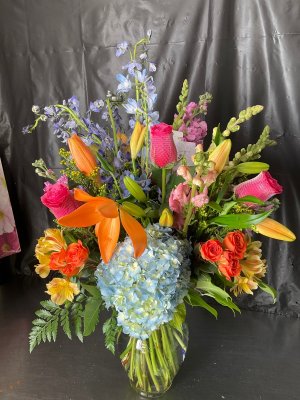 This arrangement is simply stunning! Flower kingdom never disappoints! The recipients were thrilled!