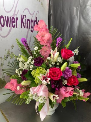 The flowers are stunning! Flower Kingdom does an incredible job always. My Grandmother loved her flower arrangement.