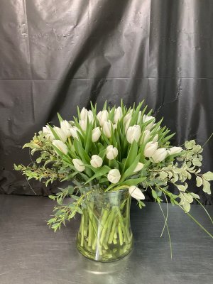 Beautiful tulip arrangement, one of my wife's favorite flowers. Flower Kingdom is the only florist I use. They are professional, courteous, friendly, and always accommodating, even at the last moment.