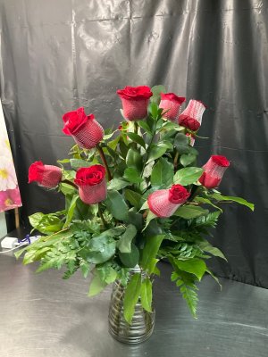 THANK YOU...A PRETTY ARRANGEMENT...ALTHOUGH I W OULD HAVE LIKED A FEW MORE ROSES INCLUDED. ANYWAY, IT WILL MAKE MY FRIEND HAPPY.